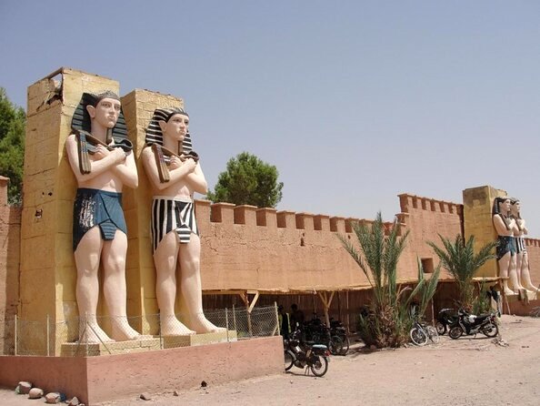 Ouarzazate fu utilizzata per la prima volta come location cinematografica già negli anni Sessanta. Qui nacque il film epico “Lawrence d’Arabia” del 1962. Il regista David Lean, avendo una certa familiarità con l’area, sapeva che il sito poteva fornire un’ambientazione autentica per qualsiasi storia antica basata sul deserto. Nell’occasione, la maestosa kasbah Tiffoultoute, oggi ristorante di lusso, fu trasformata in albergo per fornire alloggio agli attori durante le riprese del film. Immancabile, prima di risalire in bus, la foto davanti all’enorme aereo a propulsione utilizzato in un altro film epico, il “Gioiello del Nilo” del 1985.