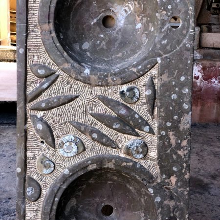Giungiamo quindi a Erfoud per il pernottamento, una cittadina tranquilla con un vasto palmeto, e una disposizione urbana a scacchiera, ricordo del suo passato militare. Qui infatti i francesi avevano creato un posto di guardia per sorvegliare la valle del Tafilalt dagli attacchi berberi. Sostiamo ad assaggiare i gustosi datteri scuri naturali, tanto rinomati da avere una festa loro dedicata che si svolge in ottobre, un evento religioso e laico che attrae turisti e gente delle tribù della zona. Oltre ai datteri, la principale risorsa di Erfoud è il marmo scuro lavorato con fossili all’interno. Visitiamo una delle numerose bottega d’intaglio, le Usine de Marmar, dove acquisto un pendente in marmo nero con al suo interno un fossile cristallizzato che contrasta per il suo colore chiaro.