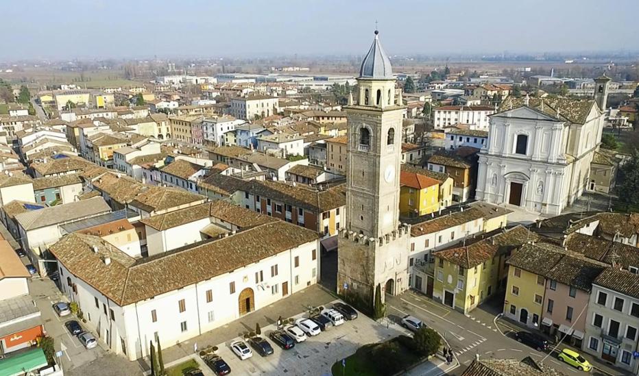 Calvisano, comune a vocazione agricola nella parte orientale della Bassa pianura bresciana, è oggi conosciuto come la patria del rugby italiano e per le intelligenti operazioni di integrazione tra gli insediamenti industriali e il più tradizionale allevamento di suini, manzi, vitelli e vacche da latte. Prima dell’Anno mille al posto dell’attuale borgo esistevano tre insediamenti importanti: uno intorno alla chiesa di S. Zenone, legata alla pieve di Visano, un secondo intorno alla chiesa di S. Felice vescovo di Brescia, anch’esso dipendente dalla pieve di Visano, e un terzo borgo intorno alla chiesa di S. Michele, di origine longobarda. Dopo la fine del regno dei Franchi, nel corso del secolo X, per difendersi dalle continue invasioni degli Ungari, la popolazione costruì un “castrum” circondato da una fossa con le acque del Saugo, munito di mura con due poderose porte tuttora esistenti, una a nord e l’altra a sud. Su di questa nel 1700, fu innalzata l’attuale torre civica, che domina l’ingresso del centro storico.